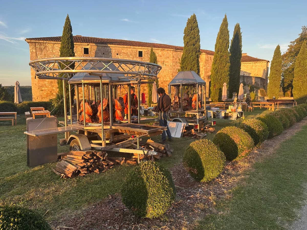 Le Cochon Voyageur, c’est avant tout une aventure humaine et artisanale née de la rencontre de Franck et Olivier. Ferronniers de métier et passionnés de feu, ils ont uni leurs savoir-faire pour créer un traiteur hors normes, où la maîtrise du métal rencontre l’art du barbecue. De cette alliance est né un univers unique : des machines de cuisson spectaculaires, entièrement conçues et fabriquées par leurs soins, que vous ne verrez nulle part ailleurs. Des pièces uniques, pensées pour sublimer la cuisson au feu de bois et offrir une expérience visuelle autant que gustative. Spécialistes reconnus de la cuisson du jarret et du porc, ils travaillent la viande avec précision, patience et respect du produit, pour des cuissons longues, maîtrisées et profondément savoureuses. Le Cochon Voyageur, c’est la rencontre du feu, du fer et de la gourmandise, au service d’une cuisine authentique et spectaculaire.